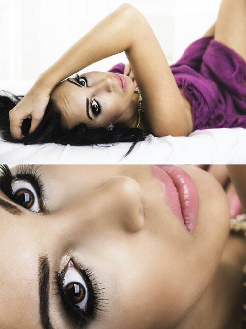 I LOVE this pic. Amber had soooooo many beautiful pics but this was my fav. I did a super smokey eye which suited her so well. And the lipgloss was actually her own! Amber suggested using her own lipgloss because she loved the color and why the heck not!? It looked fantastic on her and it suited the whole look so well!